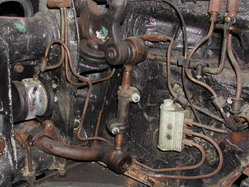 Nous voici arrivés au déshabillage du châssis. Le diagnostic de l'état de conservation de ce dernier s'étant révélé plutôt satisfaisant, c'est avec un certain enthousiasme que j'attaque le déshabillage de celui-ci. Bien sûr comme tout n'a pas été démonté, il reste encore quelques petites zones d'ombres concernant l'état des parties non mises à nues, mais je ne m'attends à rien de catastrophique, pour tout dire je ne m'attends à rien du tout. Le déshabillage n'est pas une opération des plus compliquée, un peu de méthode suffit (c'est facile de donner des conseils...). Mon seul problème est de bien répertorier comment sont montés chaque éléments (vis écrous+rondelles), car j'ai l'incorrigible manie d'essayer de remettre au bon endroit la bonne vis, la bonne rondelle, le bon écrou. Ça en devient maladif parfois et même un peu "con" je le reconnais, mais on ne se refait pas. Je prends donc des notes, fais des tas de photos, annotes mon dictionnaire des pièces détachées préféré etc... Je repère aussi les traces de peintures, signe d'un message bien précis pour qui les y a faites il y a maintenant 45 ans. Mais assez blablaté, au boulot grosse feignasse!!! |