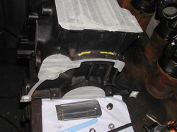 C'est parti pour la peinture du bloc. J'ai pris soin de bien le dégraisser auparavant. Puis je masque tout ce qui en devra pas être peint. |