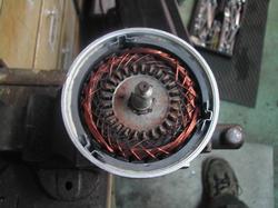 Le rotor et son collecteur radial, c'est la première fois que je vois un tel type de montage. On voit que la "piste" est noircie, bonne à nettoyer. |