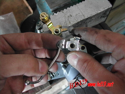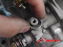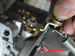 Pose de la commande sur le carbu et la verrouiller avec le ressort. Je vous préviens, c'est assez galère à faire. |