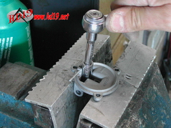 Préparation du porte gicleur. Pour ceux qui en le sauraient pas le carbu SU a un gicleur réglable. La richesse se gère avec lui et non avec une vis comme sur les carbus traditionnels. |