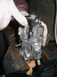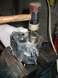 Mettre le dash-pot dans un étau sur al partie non rectifiée et serrer franchement. Le bouchon est difficile à dévisser. |
