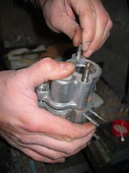Nettoyage en profondeur de tous les alésages avec un goupillon souple. Puis soufflage intensif à l'air comprimé. C'est prêt pour le remontage. |