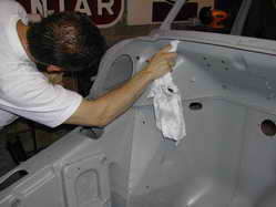 Jointage du fond de coffre. Toutes les tôles sont jointées inter et exter.