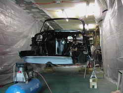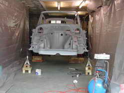 Je vais pouvoir attaquer la peinture de celui-ci. Au départ de la restauration, j'avais envisagé de faire faire la peinture par mon carrossier habituel, mais devant les frais déjà engagés dans le châssis, il fallait maîtriser au maximum les coûts et regarder ce qui pouvait être fait par moi même. J'ai déjà manié du pistolet à peinture, mais comme tout un chacun, c'est à dire pour peindre des merdouilles sans importances et de petite taille.