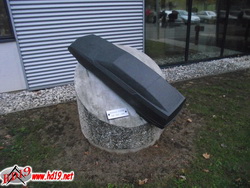 Une sculpture en granit noir (je crois) pose à l'entrée du conservatoire. Représente une XM. |