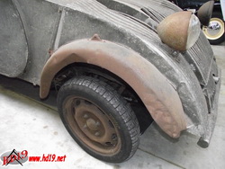 Quand on y regarde de plus près, tout est là. J'écrivais précedemment que le Cyclope et la 2CV étaient différentes, ce n'était pas tout à fait vrai. LEs formes le sont effectivement, mais toutes les solutions techniques sont quasiment là. |