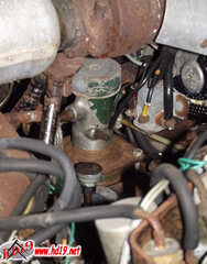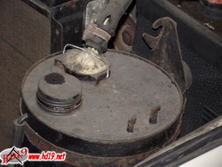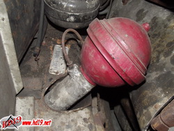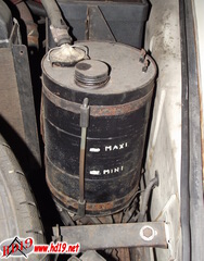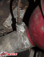 On voit ici la "bidouille" réalisée pour adapter le bocal récent aux tuyaux vissés des premiers modèles. |