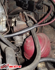 Il reste tout de même certaines pièces spécifiques des protos comme la grosse durit en acier qui à un œillet de passage pour la durit de pompe H.P. |